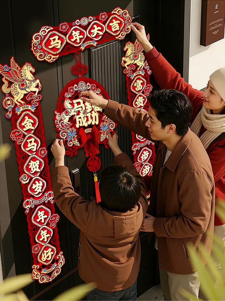 Before the festival, every household swept the room, pasted Spring Festival couplets and prepared New Year goods. Everywhere was filled with a festive atmosphere.
