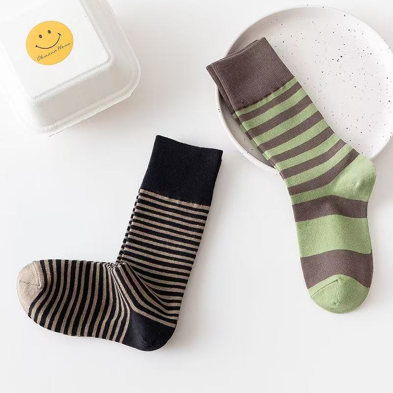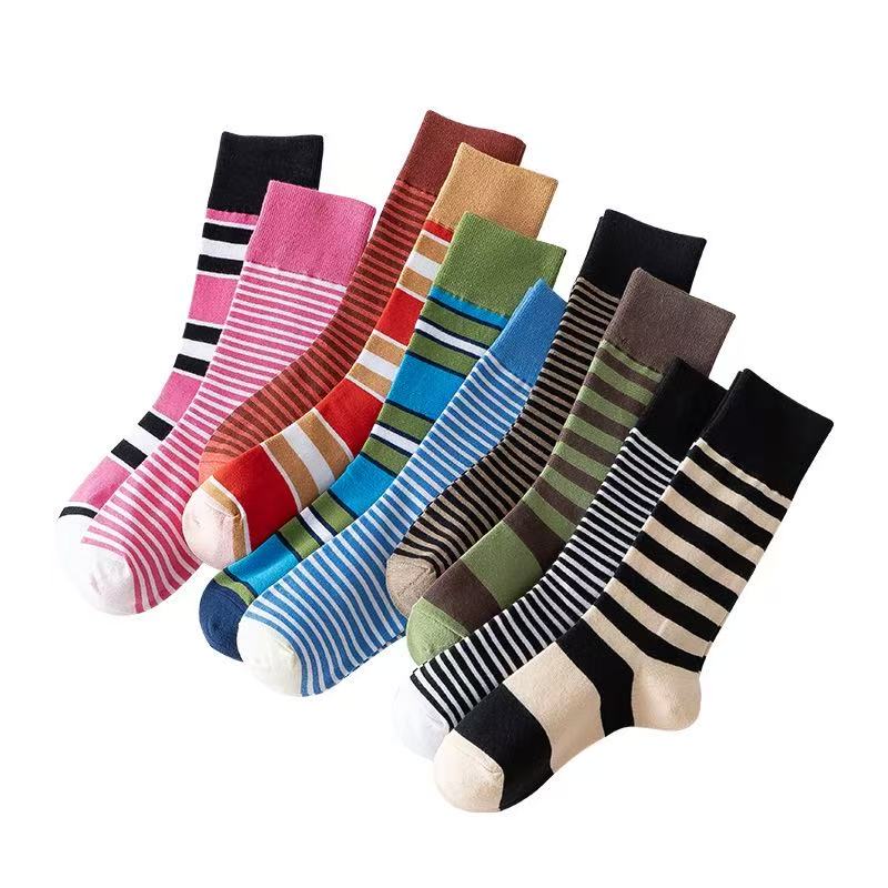 Colorful Striped Designs - The wide and narrow striped patterns and the various colors make the sock simple and classic that will easy match most casual dressing.