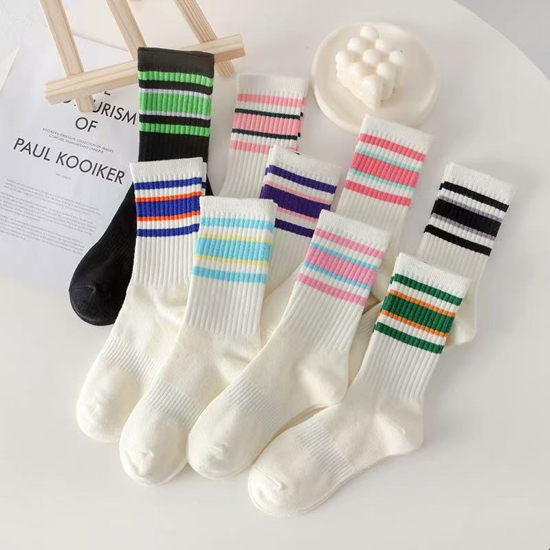 Simple Striped Socks, Cute Athletic Crew socks for Women